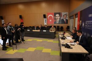 Erzincan’da etkisini sürdüren yoğun kar yağışı nedeniyle kriz masası toplandı. Erzincan İl Afet ve Acil Durum Müdürlüğü Afet Yönetim Merkezi’nde gerçekleştirilen karla mücadele ve koordinasyon toplantısında sahadaki çalışmalar masaya yatırıldı.