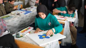 Ressam Melis DOĞAN rehberliğinde gerçekleştirilen etkinlikte öğrenciler, hayal dünyalarını tuvallere yansıtarak resim yapmanın inceliklerini öğrendi. Renkli görüntülere sahne olan programda, öğrencilerin sanata olan ilgisi ve heyecanı dikkat çekti.