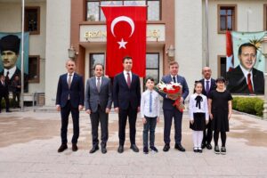 23 Nisan Ulusal Egemenlik ve Çocuk Bayramı dolayısıyla Erzincan Valiliği’nde düzenlenen anlamlı programda, temsili olarak valilik koltuğuna oturan minik öğrenci Mihriay KESKİN, dikkat çeken mesajlar verdi. Erzincan Valisi Hamza AYDOĞDU’nun makamını devralan minik vali, eğitimde güvenlik, sevgi ve hoşgörü vurgusuyla büyüklerden alkış aldı. Program kapsamında ilk olarak Valilik Şeref Defteri’ni imzalayan Mihriay KESKİN, ardından valilik makam koltuğuna oturarak günün anlam ve önemine dair konuşma yaptı. Türkiye Büyük Millet Meclisi’nin açılışının 106. yıl dönümünde söz alan minik vali, Gazi Mustafa Kemal ATATÜRK’ün çocuklara armağan ettiği bu özel günün gururunu yaşadıklarını ifade etti.