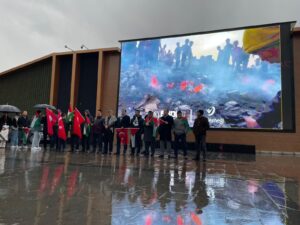Erzincan’da vatandaşlar, Filistin’de yaşanan insani drama dikkat çekmek için yağmura rağmen meydanı doldurdu. Erzincan Dörtyol Meydanı’nda Erzincan Filistin Dayanışma Platformu tarafından düzenlenen basın açıklamasına çok sayıda vatandaş katıldı. Ellerinde Filistin’e destek mesajları taşıyan katılımcılar, Gazze’de yaşanan sivil kayıplar ve insani krize dikkat çekti.